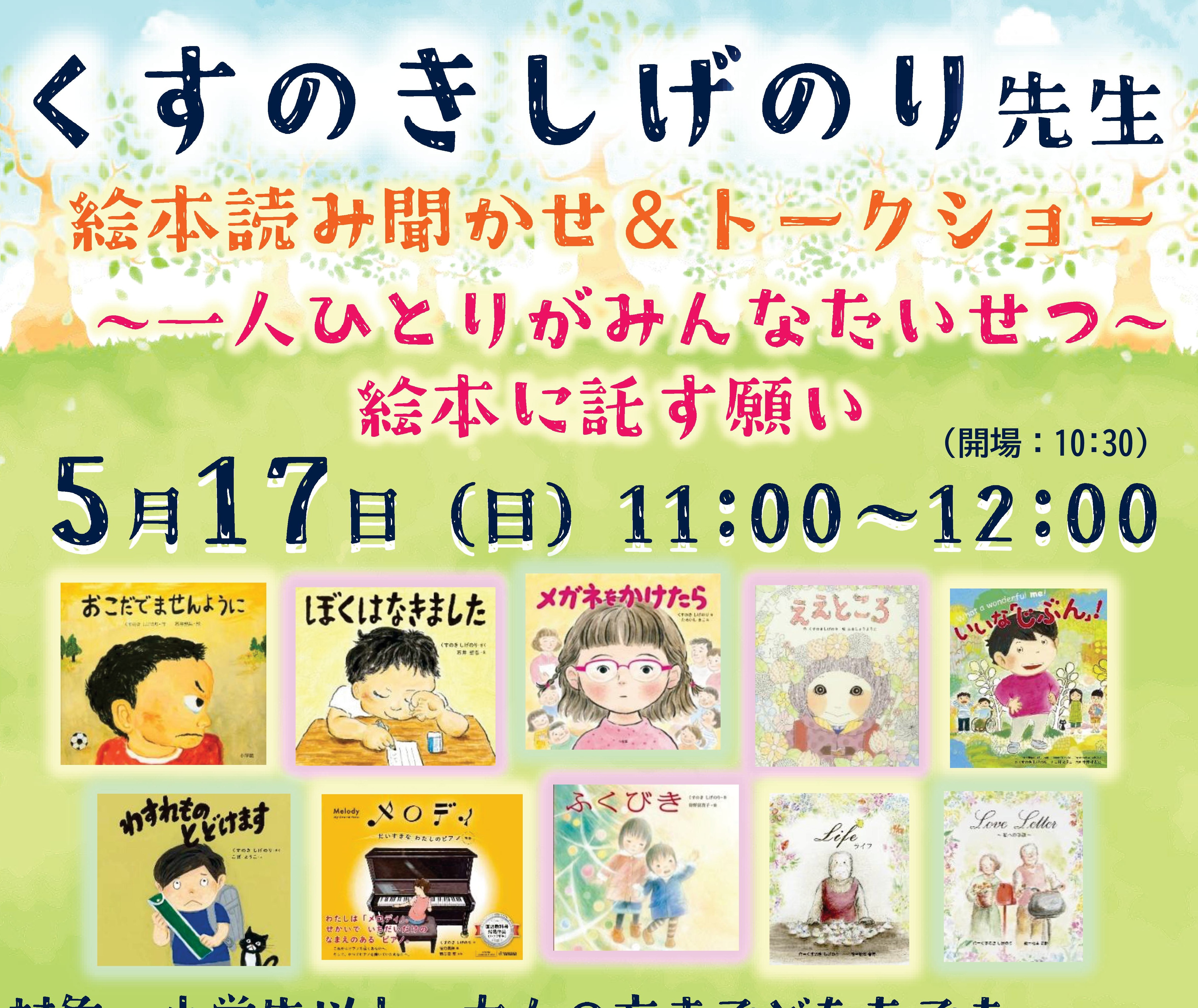 「くすのきしげのり先生 絵本読み聞かせ&トークショー ~一人ひとりがみんなたいせつ~絵本に託す願い」開催のお知らせ