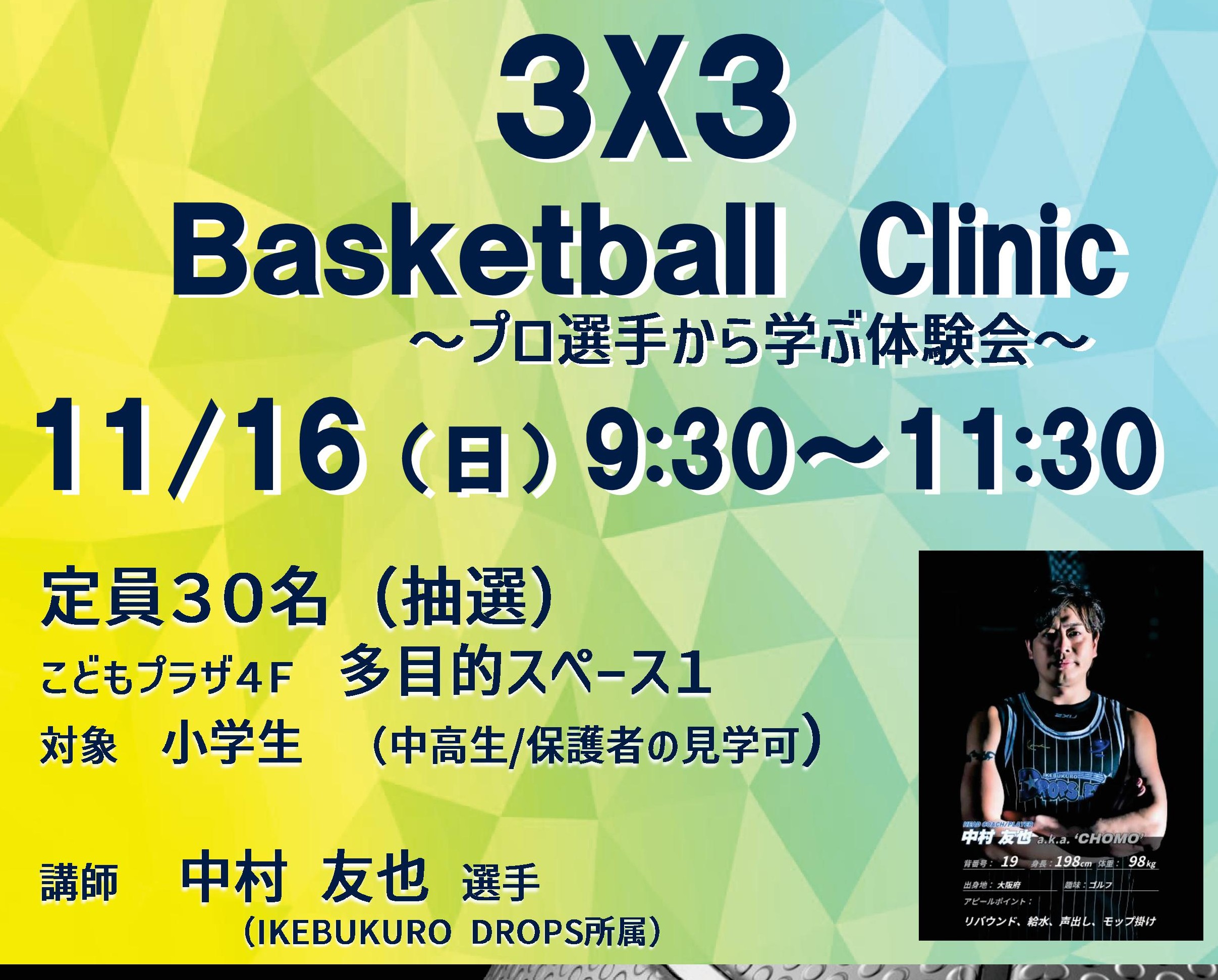 「3X3バスケットボールクリニック~プロ選手から学ぶ体験会~」開催のお知らせ