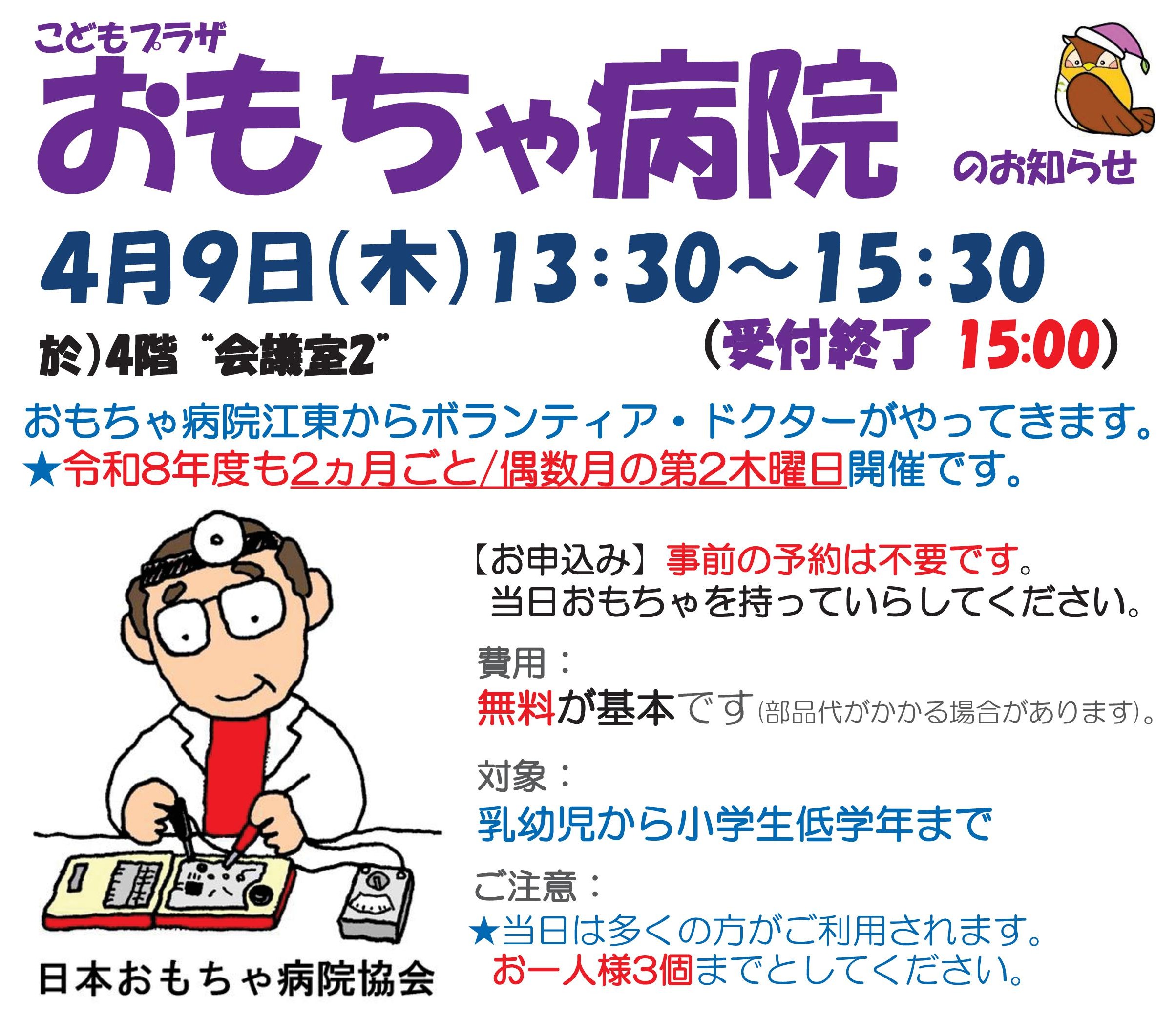 「おもちゃ病院」開催のお知らせ